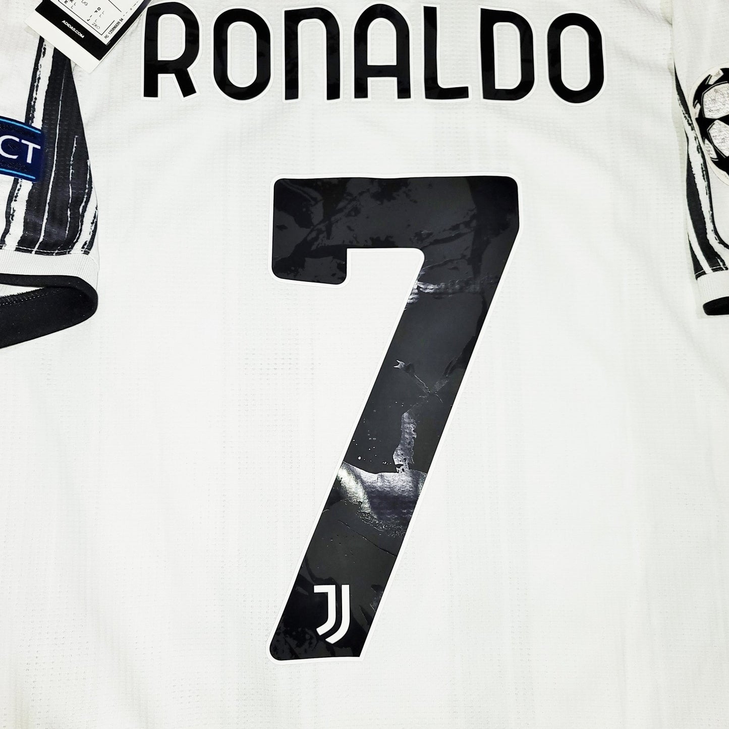 This is an Authentic Used Cristiano Ronaldo Juventus Player Issue UEFA Version Jersey from the 2020 - 2021 UEFA Champions League Season.