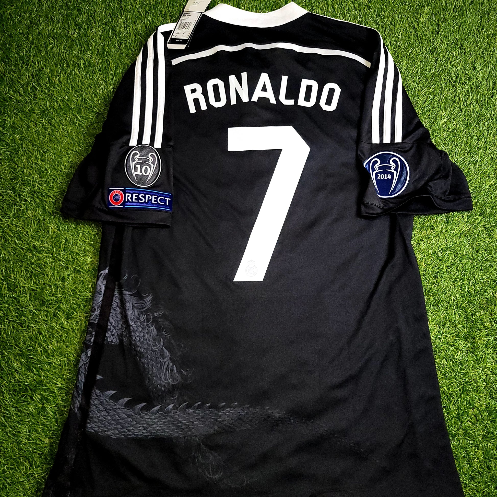 Official Cristiano Ronaldo Real Madrid Dragon Y-3 Yamamoto Third Jersey used during the 2014 - 2015 UEFA Champions League Season.