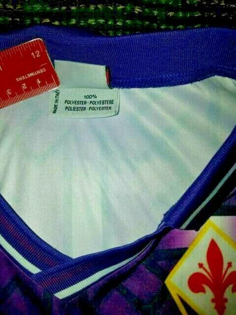 This is an Authentic Used Fiorentina Jersey used during the 1992 - 1993 Italian League Season .
