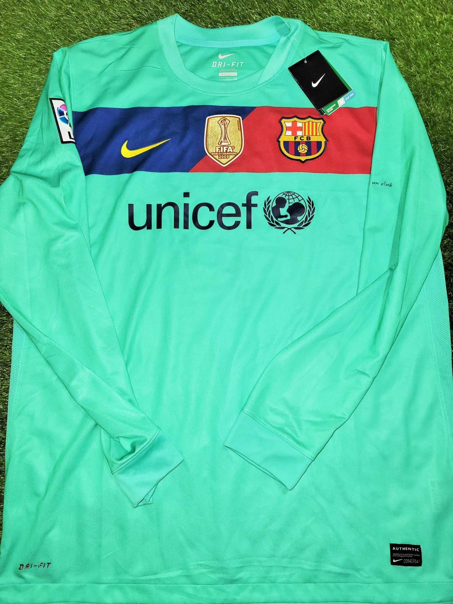 Iniesta Barcelona 2010 2011 Green Away Long Sleeve Jersey Shirt Camiseta BNWT XL SKU# 382359-310
