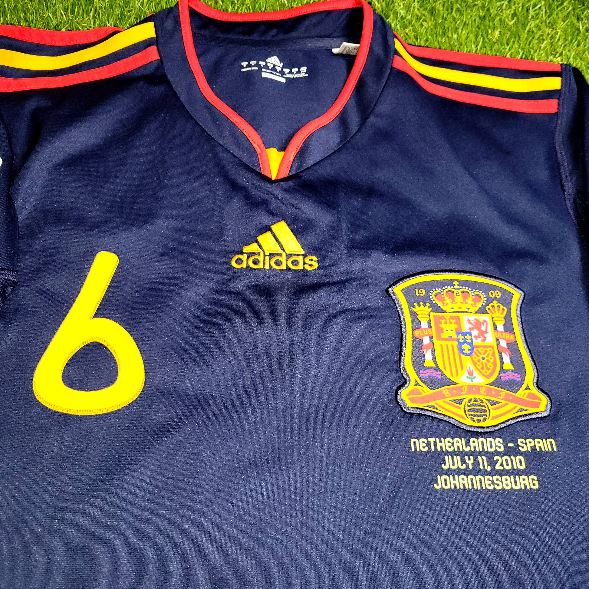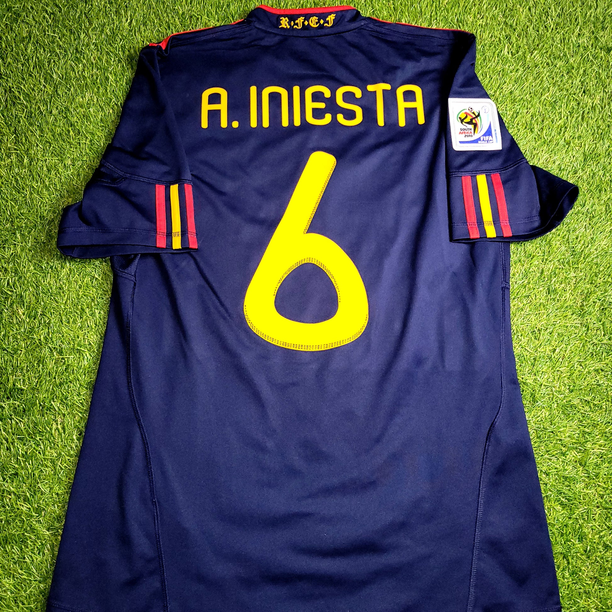 Official Andres Iniesta Spain Navy Jersey from the 2010 World Cup Final vs Holland.