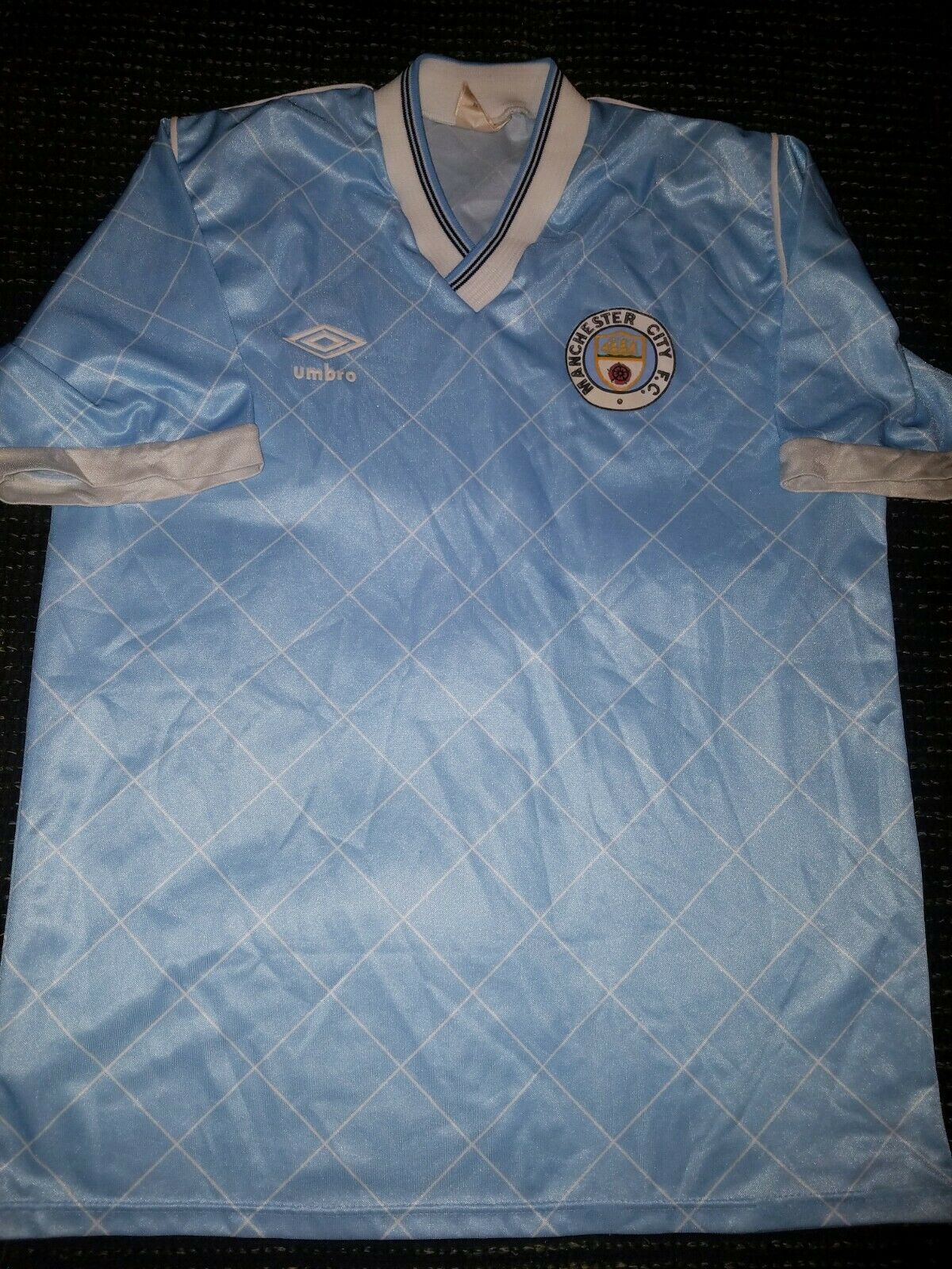 This is a Authentic Used Manchester City Umbro Jersey used during the 1987 - 1989 English Football Seasons.