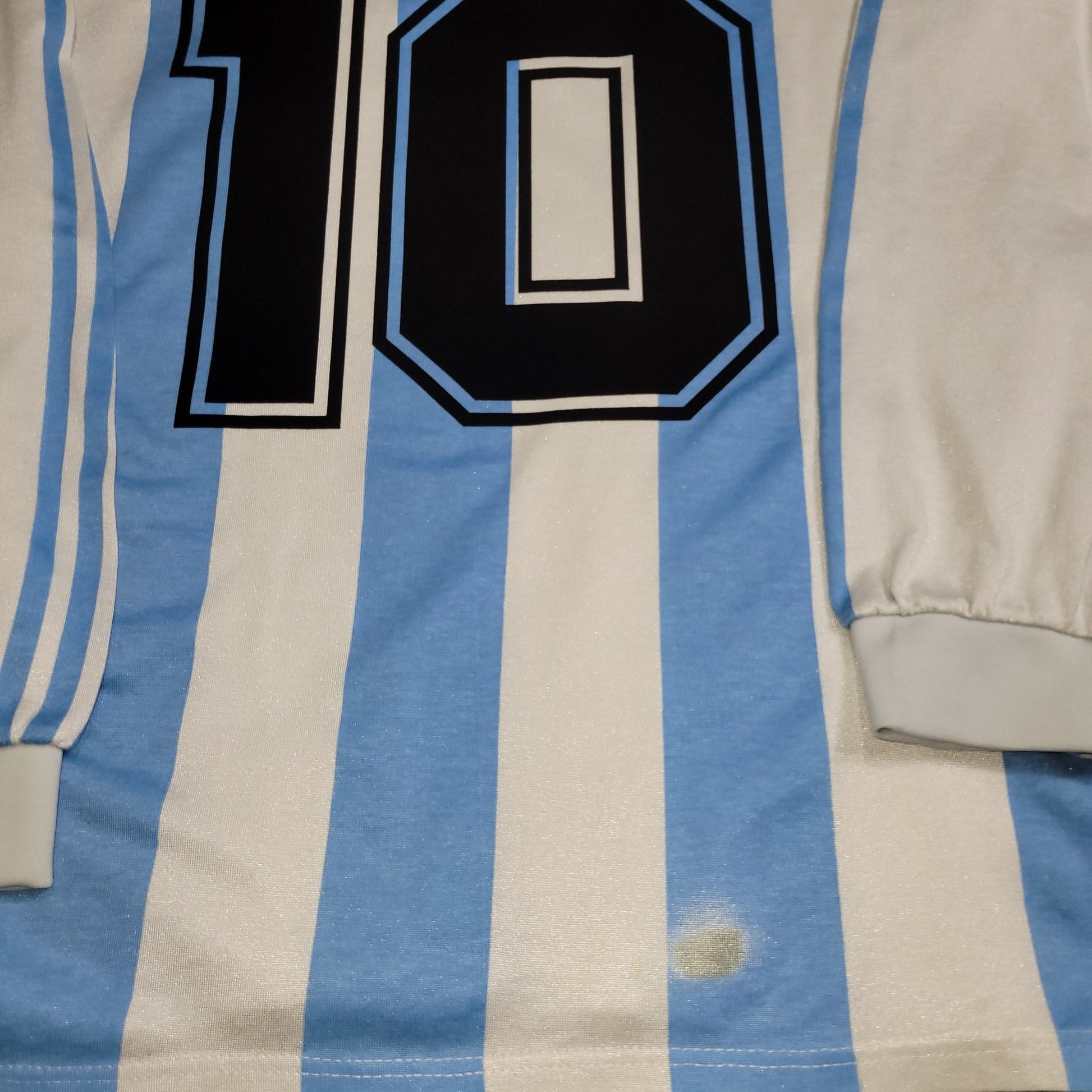 THIS SHIRT IS A MUST HAVE FOR ANY FOOTBALL/SOCCER JERSEY COLLECTOR. IT WAS MARADONA'S LAST WORLD CUP AND LAST MATCH WITH THE ARGENTINE NATIONAL TEAM.