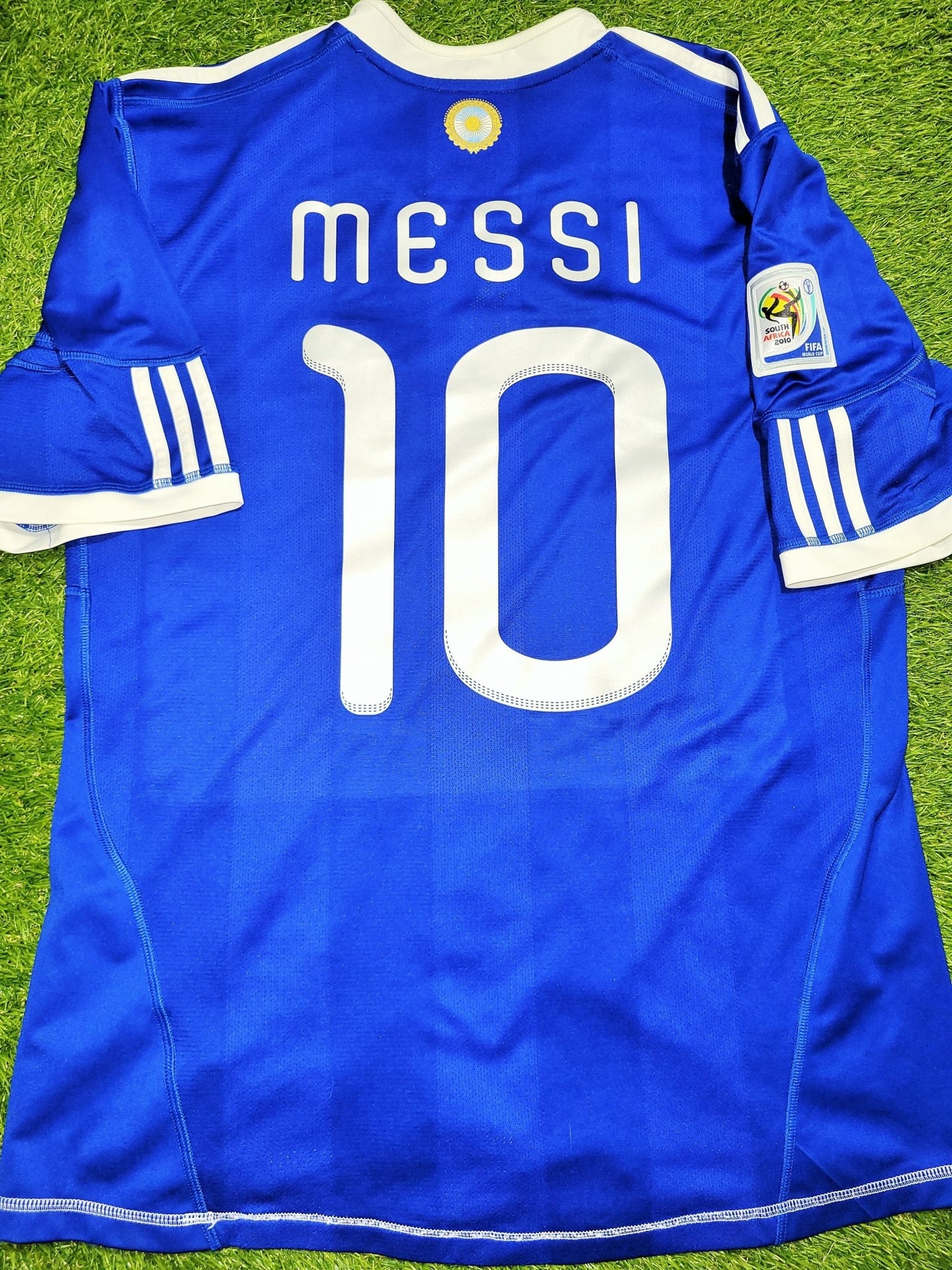Messi Argentina 2010 WORLD CUP Away Soccer Jersey Shirt L SKU# P47053 AZB001