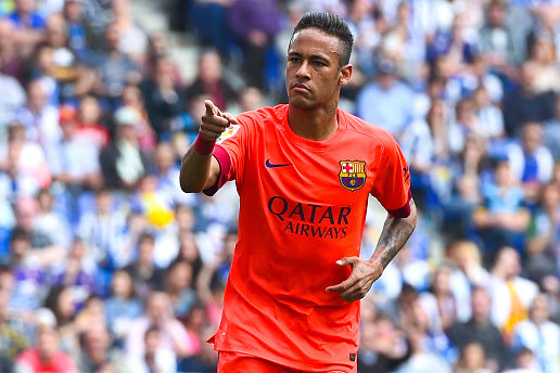 Official Neymar Barcelona Away Jersey from the 2014 - 2015 Spanish La Liga League Season.