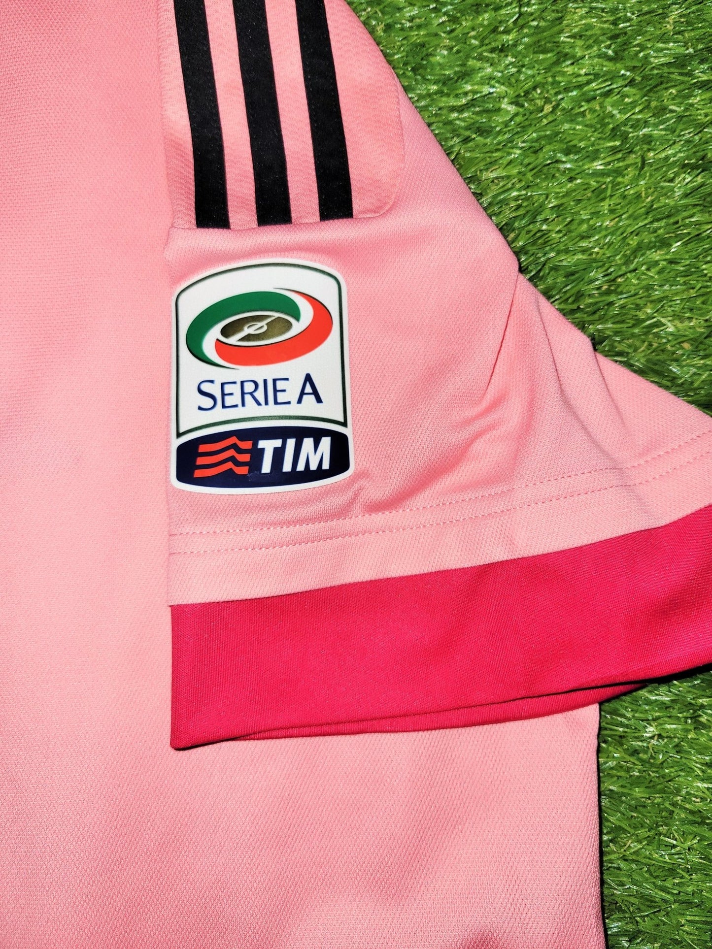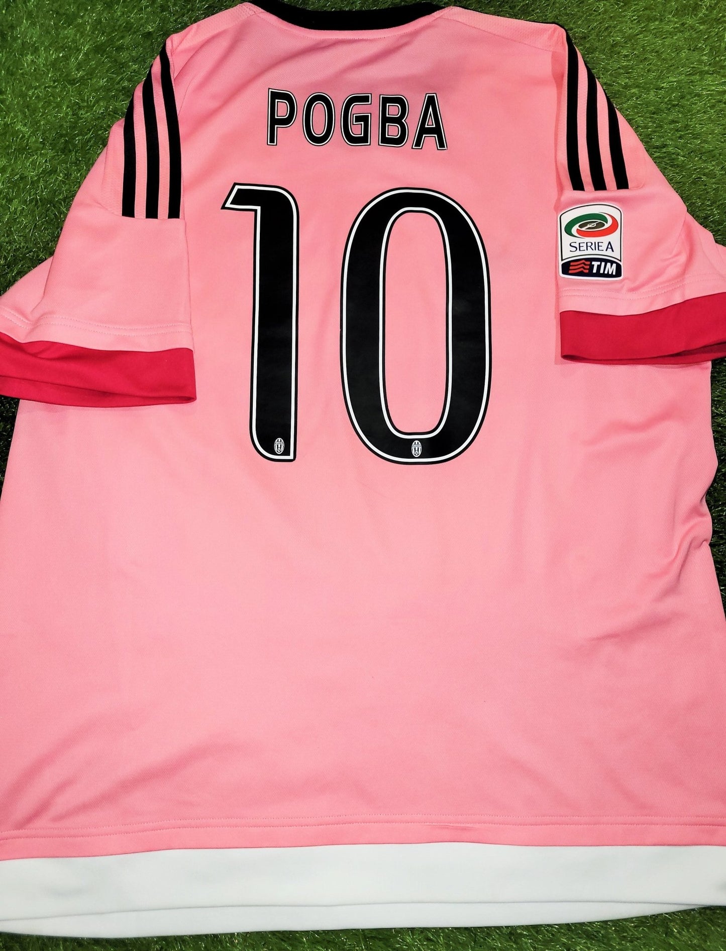 This is an Authentic Used Paul Pogba Away Pink UEFA Juventus Jersey from the 2015 - 2016 Serie A Italy Season.