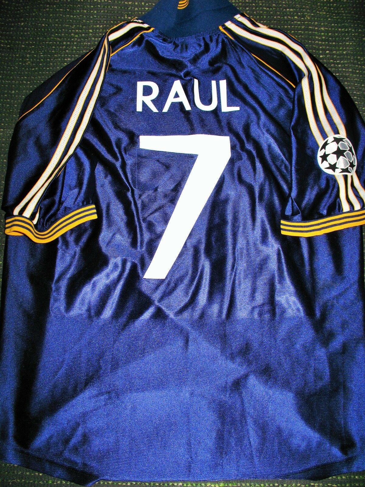 This is an Authentic Used Raul Gonzalez Real Madrid Jersey from the 1998 - 1999 UEFA CHAMPIONS LEAGUE SEASON. Real Madrid wore this shirt in the Quarter finals leg vs Schevchenko's Dynamo Kiev in which they were elminated!