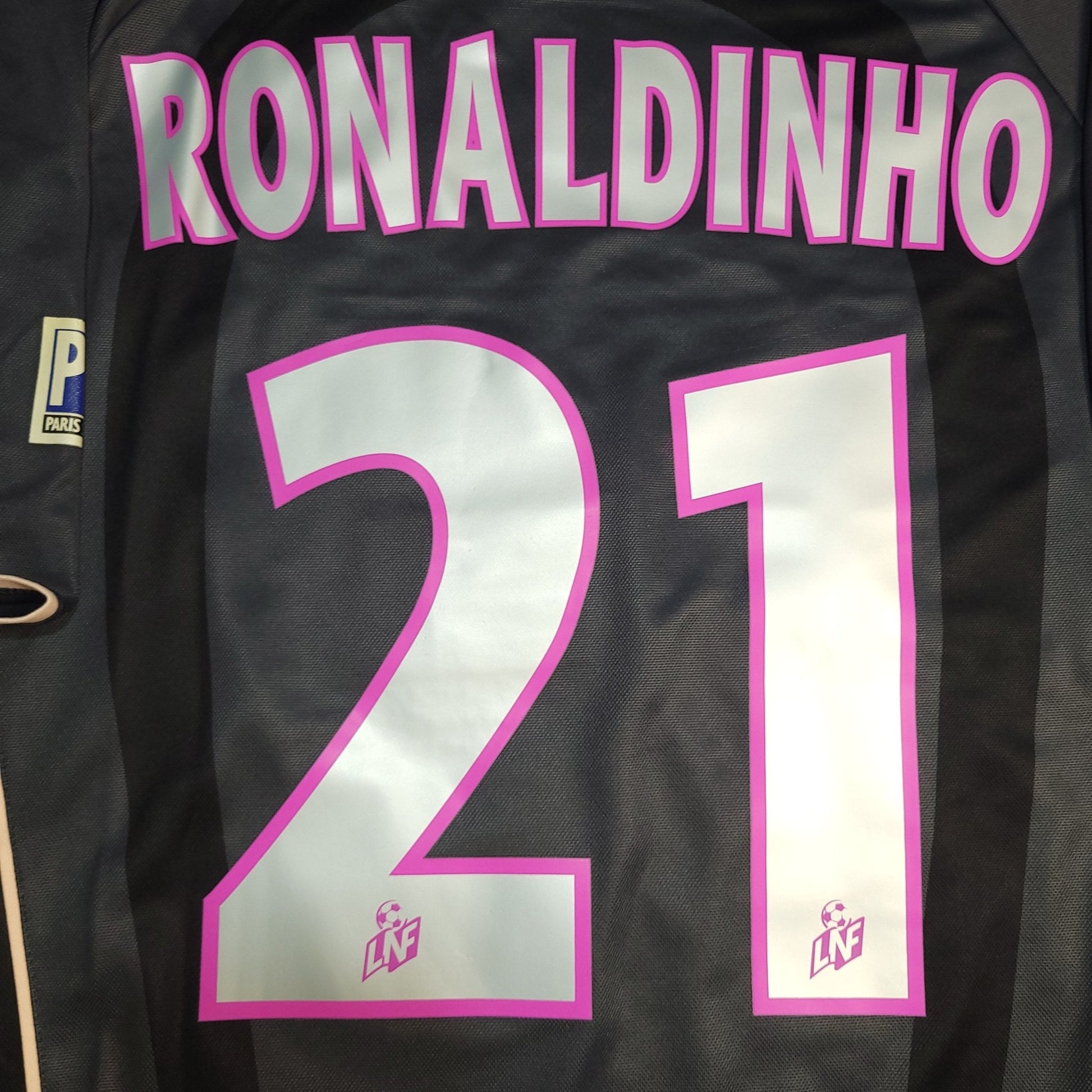 Official Ronaldinho PSG Paris Saint Germain Away Black Jersey from the 2001 - 2002 French Ligue 1 Season.