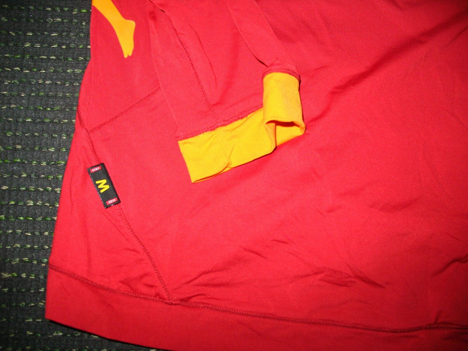 The size is M! It is a tight fitting jersey.