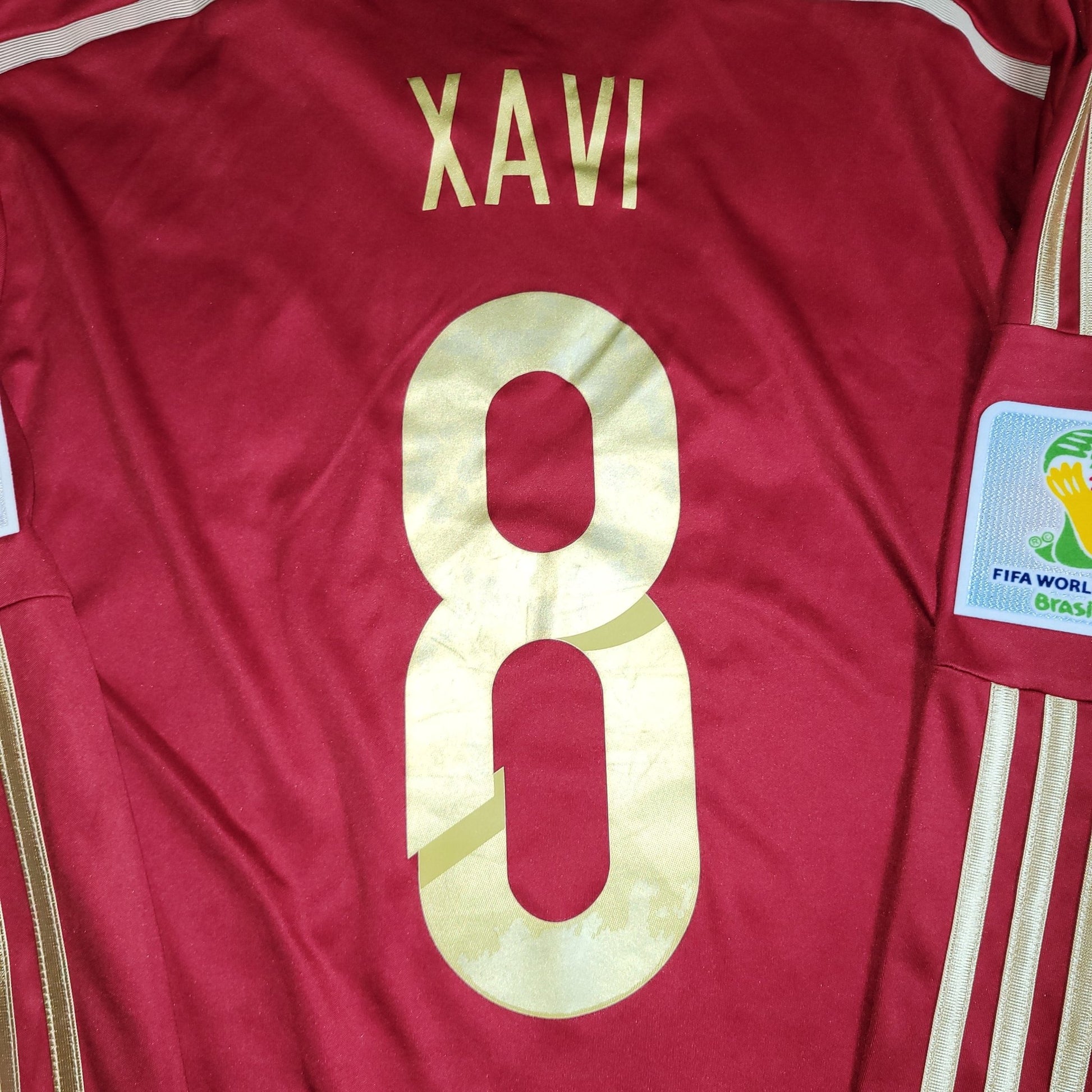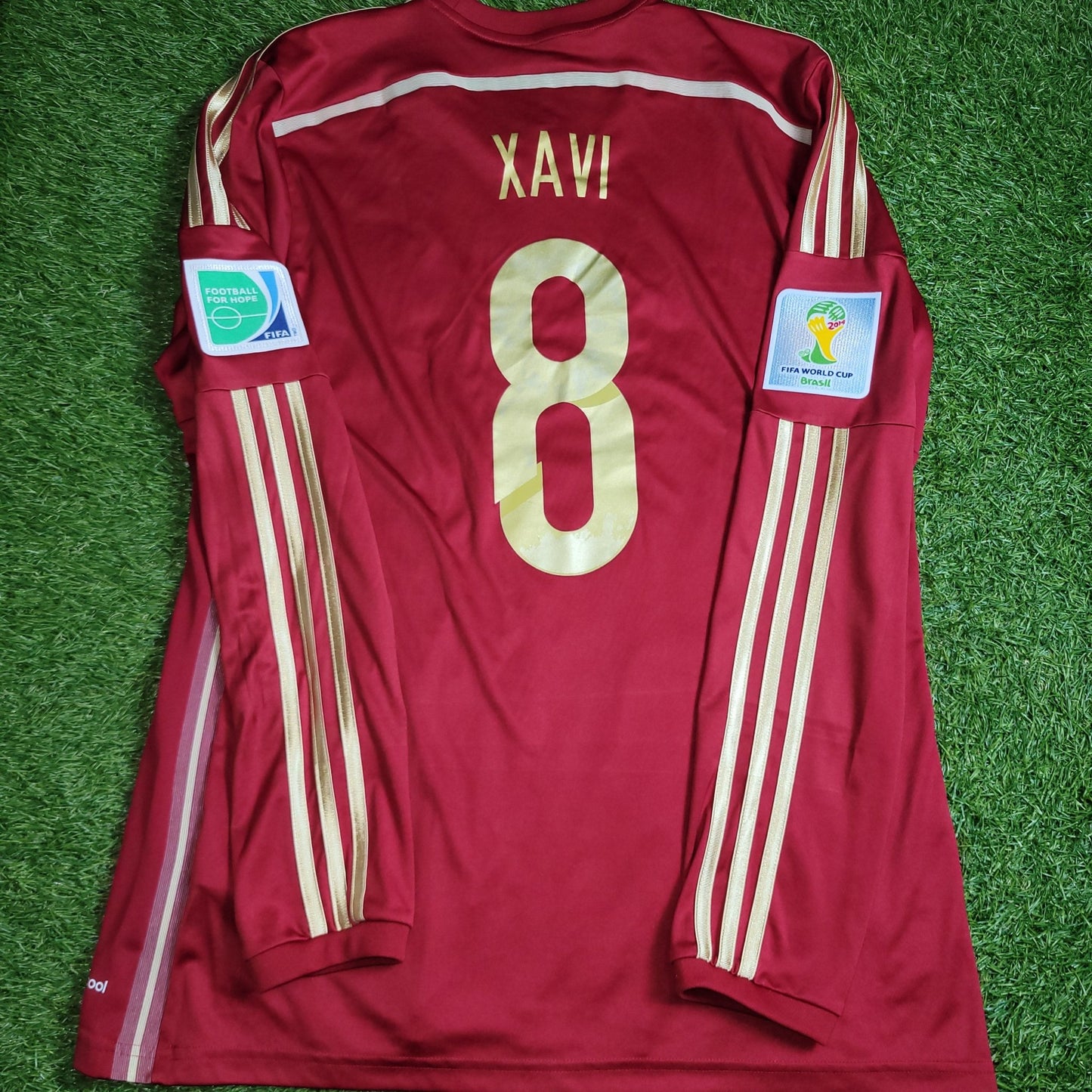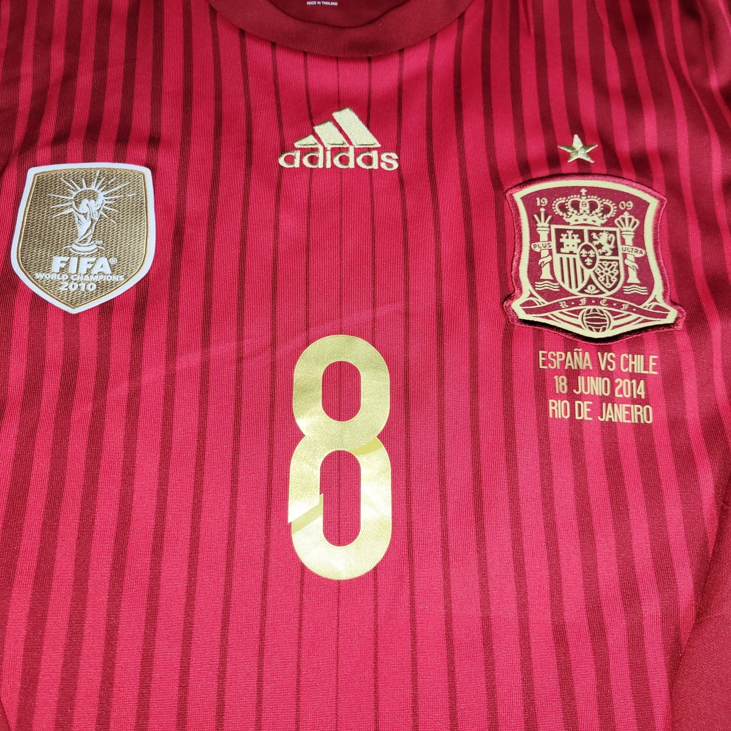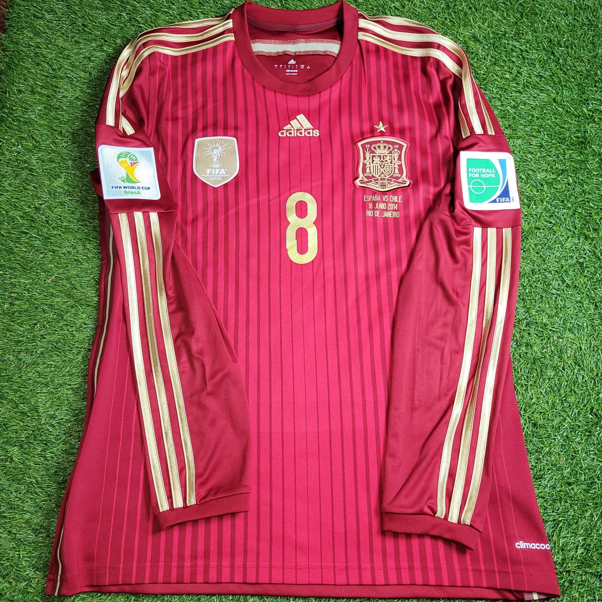 Official Xavi Spain Long Sleeve Home Jersey From The 2014 World Cup Match Vs Chile.