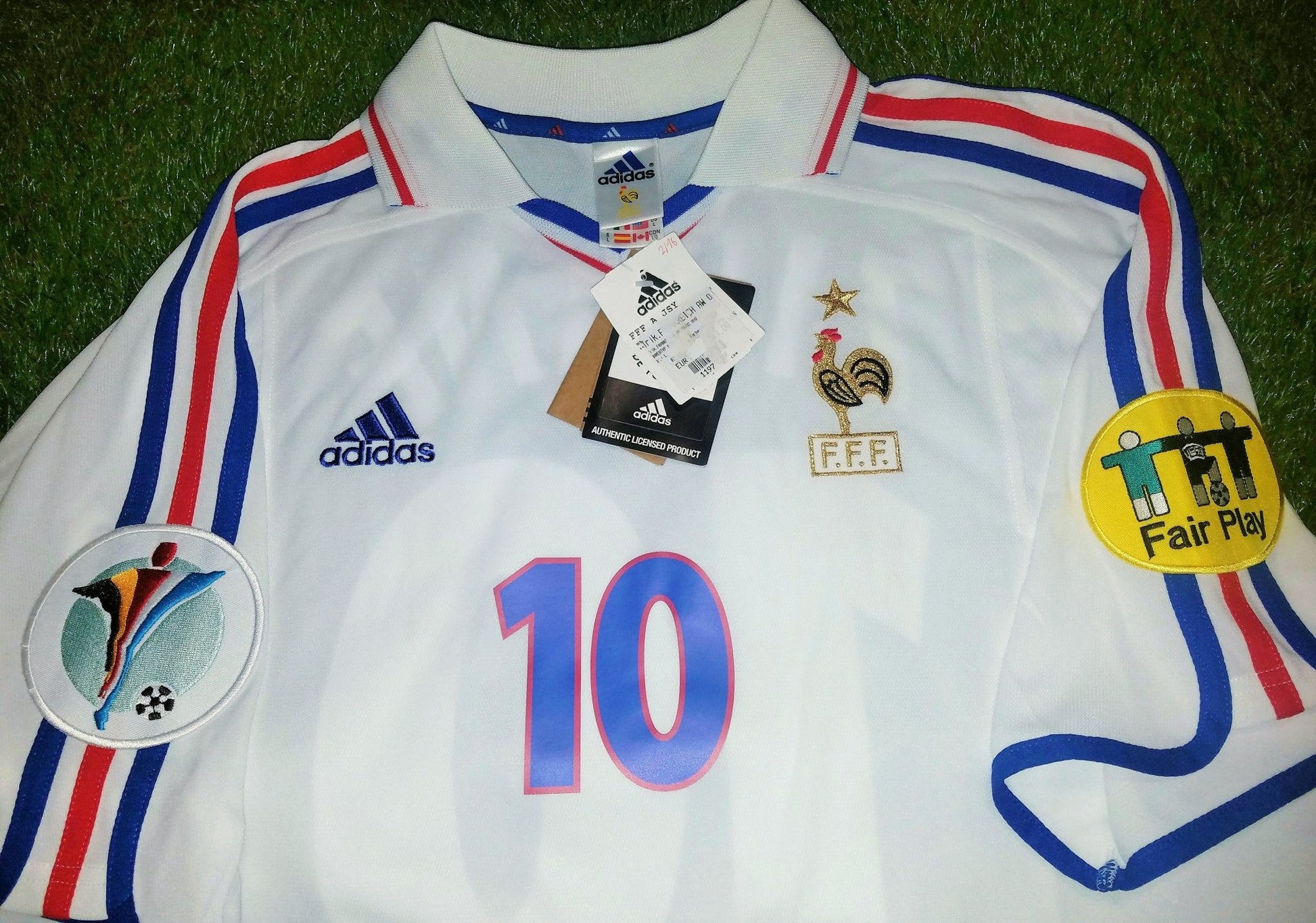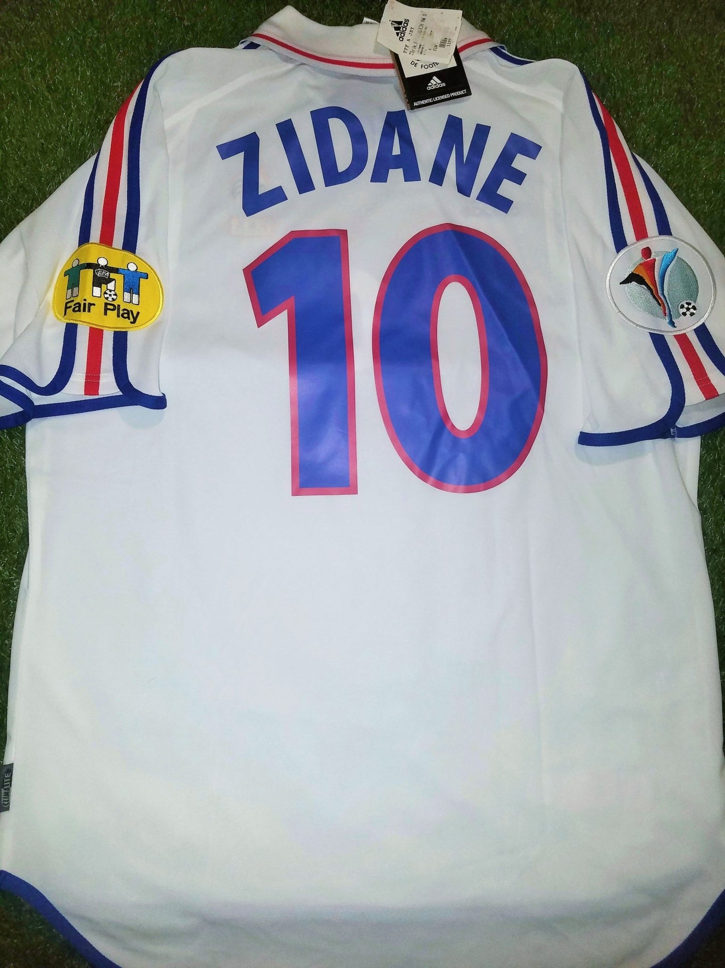 This is an Authentic Used Zinedine Zidane France Adidas Away Jersey from the 2000 Euro Cup. France went on to win the Euro Cup that year!