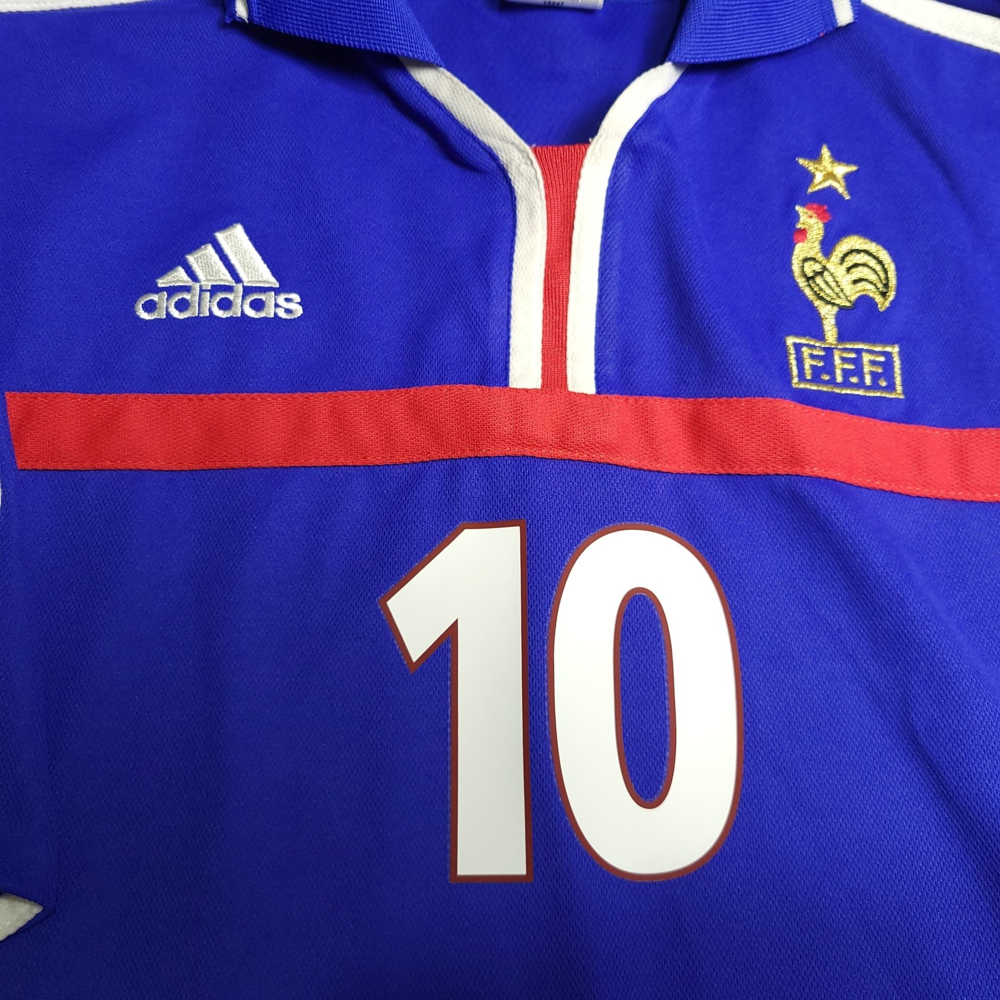 Official Zinedine Zidane France Adidas Home Jersey from the 2000 Euro Cup.